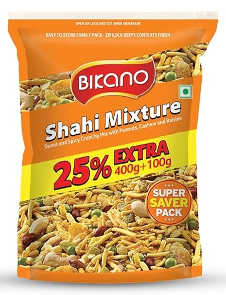 Bikano Shahi Mixture Namkeen| Crunchy Dry Fruits Peas & Peanuts| Crunchy & Tasty, 400g + 100g Extra