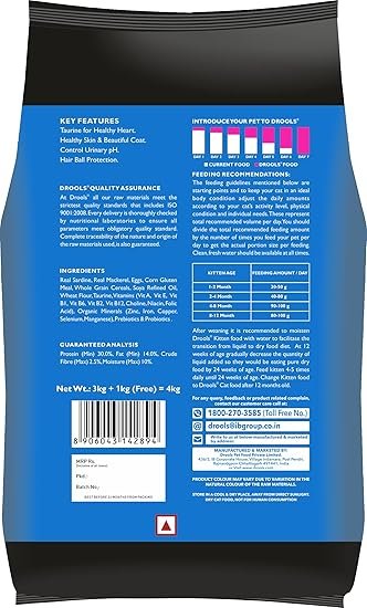 Be the first to review “Drools Kitten Dry Cat Food Ocean Fish, 4kg Pack (3kg+1kg food Free Inside)”