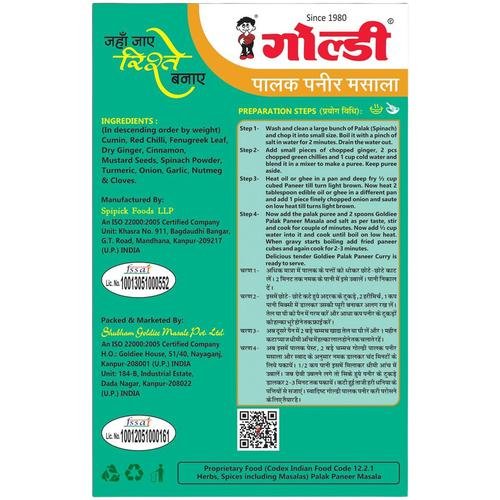 Goldiee Masala – Palak Paneer, 100 g